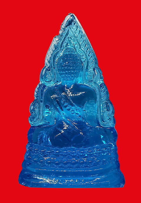 พระพุทธชินราช วัดพระศรีรัตนฯ รุ่นหลวงพรหมโยธี เนื้อแก้ว(ฟ้า) ปี2495 จ.พิษณุโลก + บัตร G-pra สภาพสวยเดิมค่ะ สภาพตามรูปทุกประการค่ะ