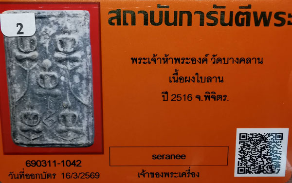 พระเจ้าห้าพระองค์ วัดบางคลาน เนื้อผงใบลาน ปี2516 จ.พิจิตร + บัตรG-pra สภาพเดิมค่ะ
