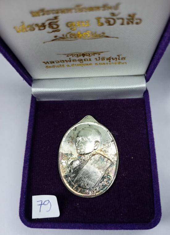 เหรียญมหาโภคทรัพย์ รุ่นเศรษฐีคูณเจ้าสัว หลวงพ่อคูณ วัดบ้านไร่ พิมพ์ห่มเฉียง เนื้อเงิน "หลังแบบ" เบอร์ 79 พร้อมกล่องเดิมครับ (เหรียญหนัก 14.43 กรัม)