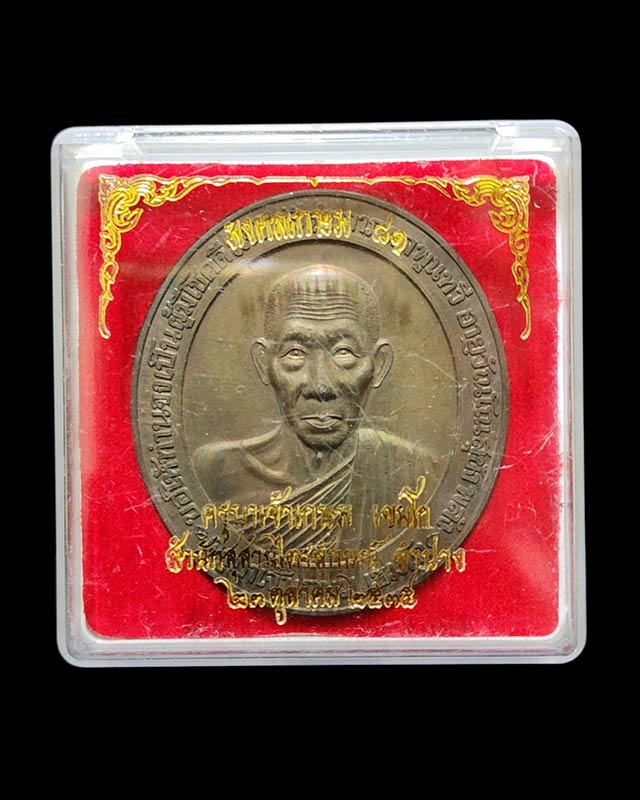 เหรียญบาตรน้ำมนต์ หลวงพ่อเกษม เขมโก รุ่น มงคลเกษม 81 ปี 2535 |