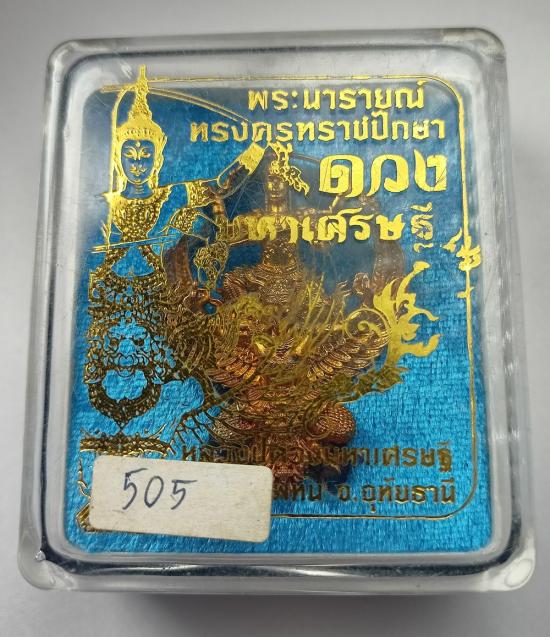 พระนารายณ์ทรงครุฑราชปักษา ดวงมหาเศรษฐี หลวงปู่ดวงเศรษฐี วัดหนองไผ่ เนื้อทองนพคุณชมพูนุช เบอร์ 505 พร้อมกล่องเดิมครับ