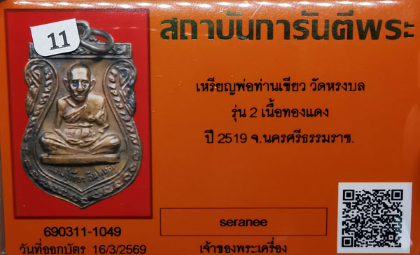 เหรียญพ่อท่านเขียว วัดหรงบล รุ่น2 เนื้อทองแดง ห่วงเดิม ปี2519 จ.นครศรีธรรมราช + บัตรG-pra สภาพเดิมค่ะ