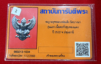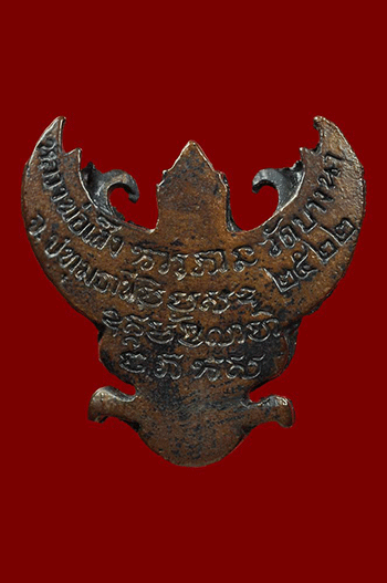 พญาครุฑหลวงพ่อเส็ง วัดบางนา เนื้อตะกั่วอาบทองแดง ปี 2522 จังหวัดปทุมธานี พร้อมบัตรพร้อมบัตรรับรอง