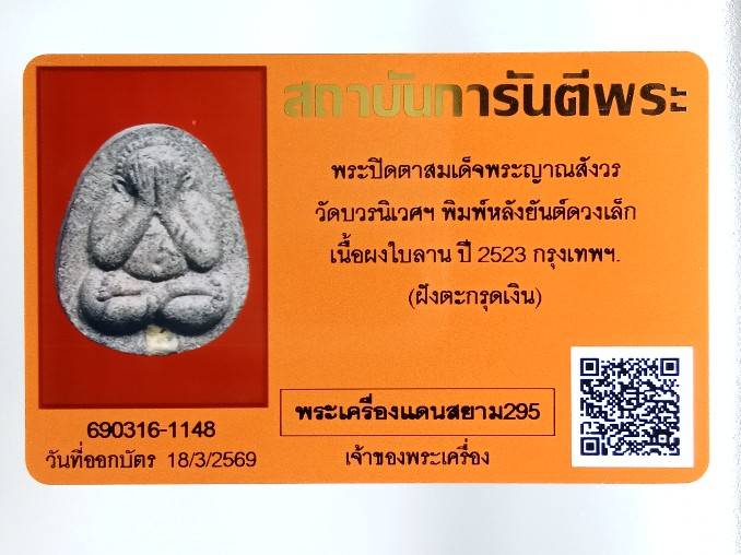 ภาพในบัตรรับรองพระแท้จากสถาบันการันตีพระ