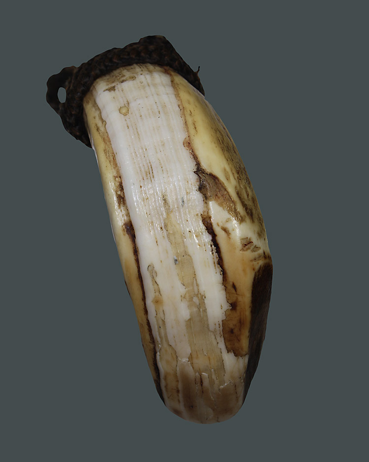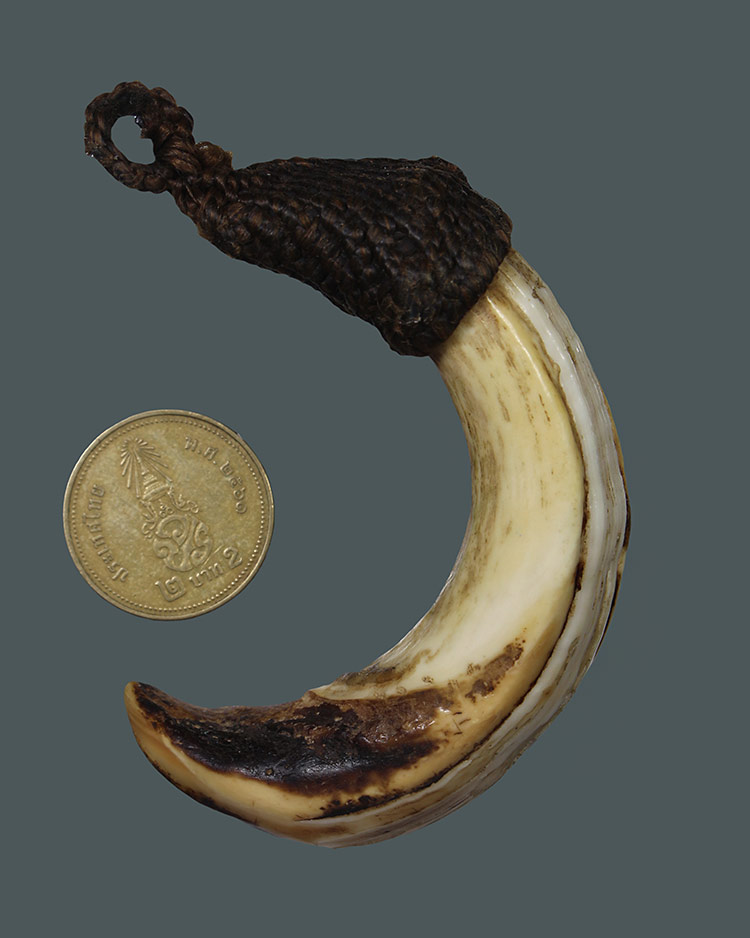 วัดใจ**เครื่องราง เขี้ยวหมูตันถักเชือกเก่า*{ เขี้ยวงอกที่โคน }*ยาว 4.นิ้ว ของทนสิทธิ์มีดีในตัว แม้ไม่ต้องปลุกเสก หายาก...เดิมๆครับ