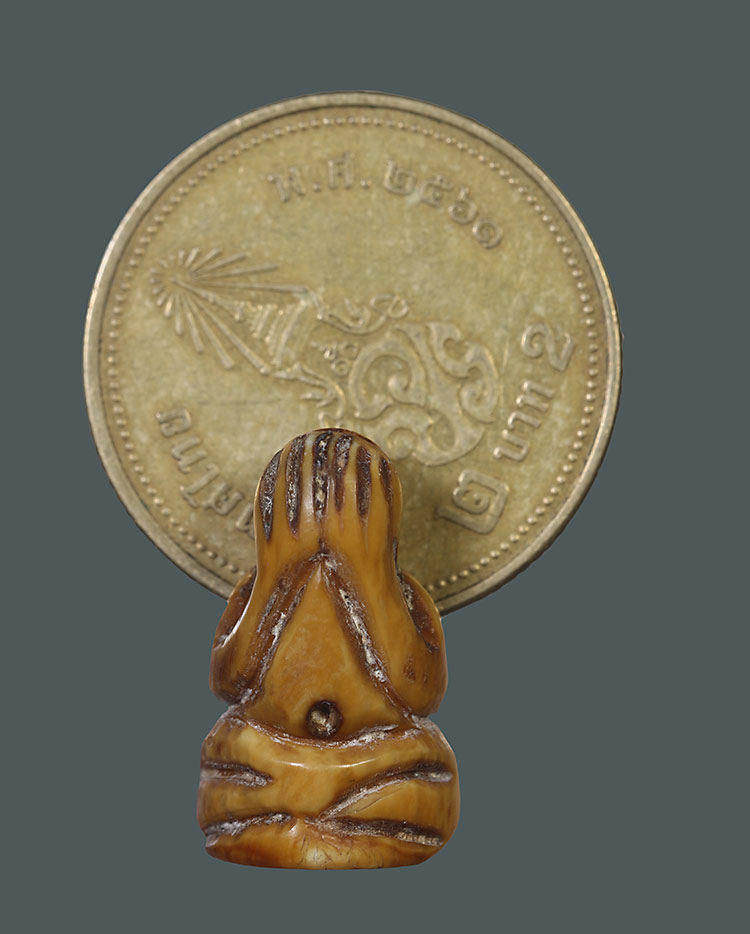 ชื่อพระเครื่อง วัดใจ**เครื่องราง พระปิดตาเนื้องาแกะ มีรอยจารเก่า ไม่ทราบที่....ตามสภาพครับ