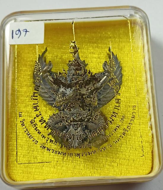 พญาครุฑทรงฤทธิ์ รุ่น โคตรมหาเศรษฐี วัดพระมหาธาตุวรมหาวิหาร ปี61 เนื้อชนวนนวะโลหะ (แยกชุดของขวัญ) เบอร์ 197 พร้อมกล่องเดิมครับ