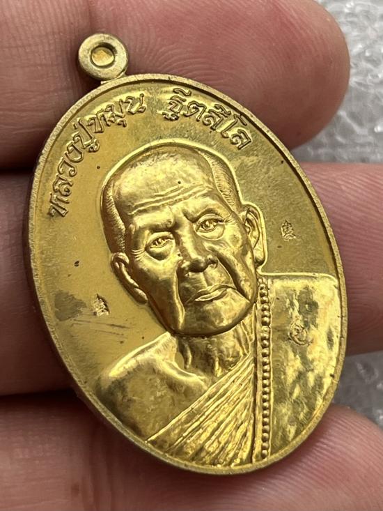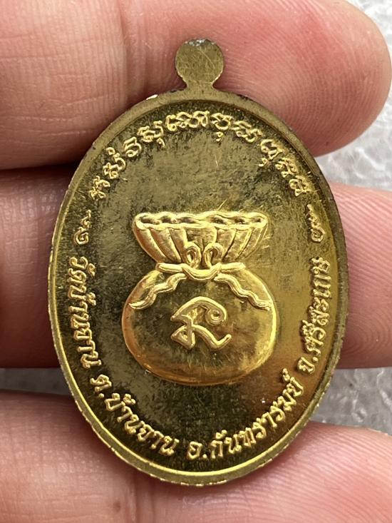 เหรียญโภคทรัพย์ หลังถุงเงิน หลวงปู่หมุน วัดบ้านจาน เนื้อทองฝาบาตร (ยุคหลัง ไม่ทันหลวงปู่) นำโชคเมตตามหานิยม เหรียญสวยมากๆ