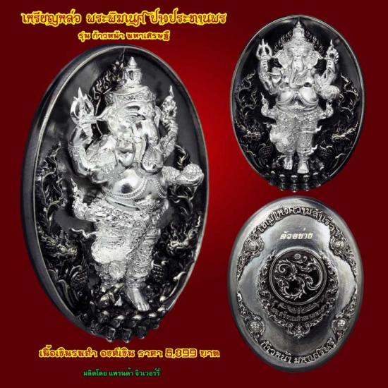 เหรียญหล่อพระพิฆเนศ ปางประทานพร รุ่นก้าวหน้า มหาเศรษฐี ลพ. หนุน วัดพุทธโมกข์ รายการ 9.1 เนื้อเงินรมดำ องค์เงินน หมายเลข ๒๒๕