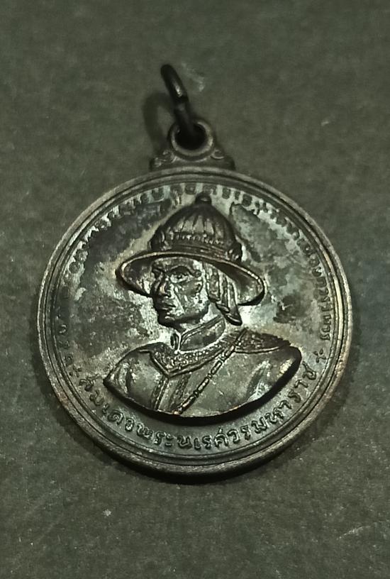 เหรียญพระนเรศวร เนื้อทองแดง วัดป่าเลไลย์ สุพรรณบุรี ปี 2513