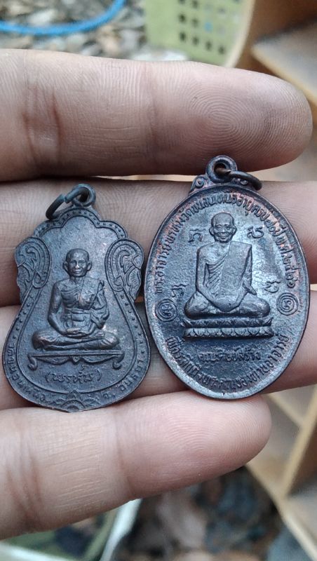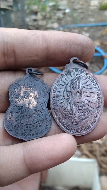 เหรียญหลวงพ่อพรหม นารายณ์เหยียบเมฆ คู่ เหรียญนพเก้า หลังสิงห์ลายเส้น "ปั๊มย้อน" สวยๆเดิมๆ วัดขนอนเหนือ จ.อยุธยา |