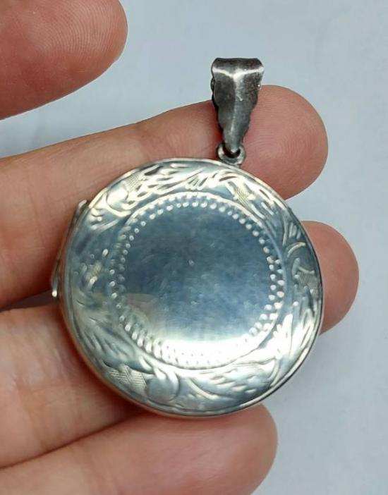 จี้ล็อกเก็ต ตลับเงินแท้ (Sterling Silver Locket) เป็นวินเทจ ขนาดกว้าง ประมาณ 3 ซม.