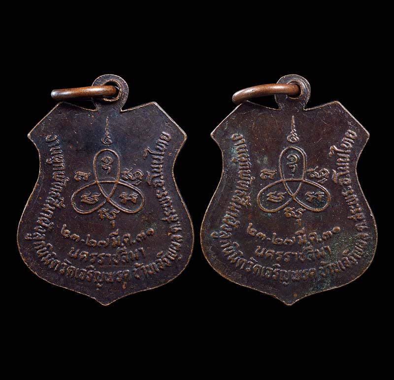 เหรียญอาร์ม ที่ระลึกในงานผูกพันธ์สีมาฝังลูกนิมิต วัดเจริญพรต จ.นครราชสีมา ( เนื้อทองแดง ) วันที่ 23 - 27 มกราคม พ.ศ.2531