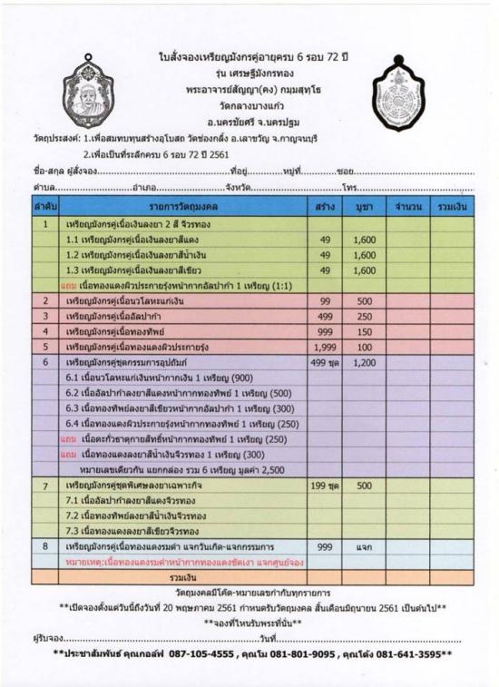 แบ่งปัน เหรียญเศรษฐีมังกรทอง อายุครบ6รอบ72ปี พระอาจารย์สัญญา(คง) กมฺมสุทโธ วัดกลางบางแก้ว จ.นครปฐม ปี2561 ชุดกรรมการ 3องค์ อัลบาก้าลงยาแดง ทองทิพย์ลงยาน้ำเงิน ทองแดงลงยาเขียว สร้าง199ชุด หมายเลข55 ราค