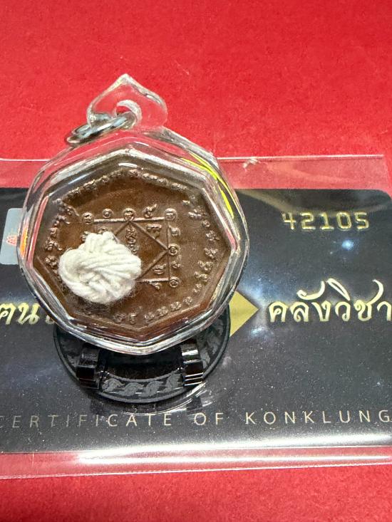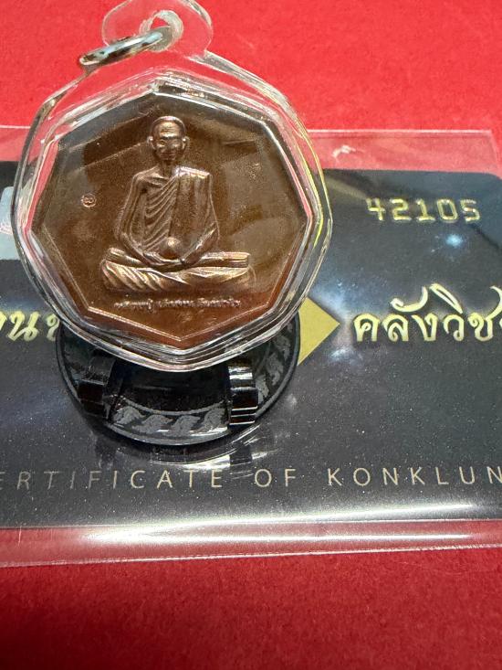 รายละเอียด เหรียญเพชรยอดมงกุฏ เนื้อสัมฤทธิ์ เลี่ยมพร้อมสายสิญจ์ หลวงปู่เดินหน อิเกสาโร พร้อมบัตรรับรอง เคาะเดียว องค์1 เลข 24105 ไม่มีหนังสือแถม
