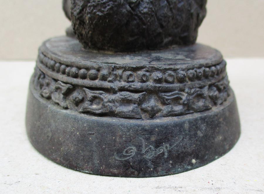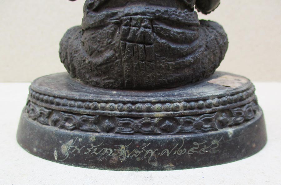 ฐานกว้าง 5 นิ้ว ใต้ฐานอุดปูนฝังตะกรุดสามกษัตริย์ 3 ดอก เงิน ทอง นาค และสายสิญณ์