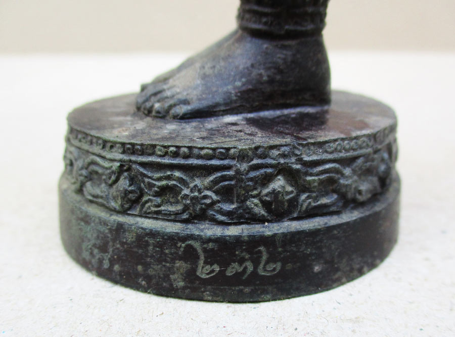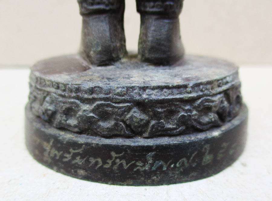 ฐานกว้าง 2.2 นิ้ว ใต้ฐานอุดปูนฝังตะกรุดสามกษัตริย์ 3 ดอก เงิน ทอง นาค และสายสิญณ์