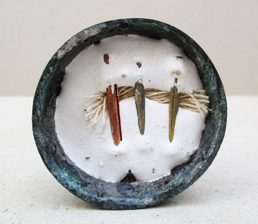 ใต้ฐานอุดปูนฝังตะกรุดสามกษัตริย์ 3 ดอก เงิน ทอง นาค และสายสิญณ์