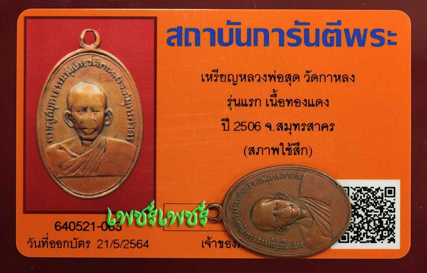 เหรียญ หลวงพ่อสุด วัดกาหลง รุ่นแรก เนื้อทองแดง ปี2506 จ.สมุทรสาคร สภาพยังสวยคมชัด พร้อมบัตรรับรองพระแท้จากการันตีพระสบายใจได้พระแท้แน่นอน ค่ะ