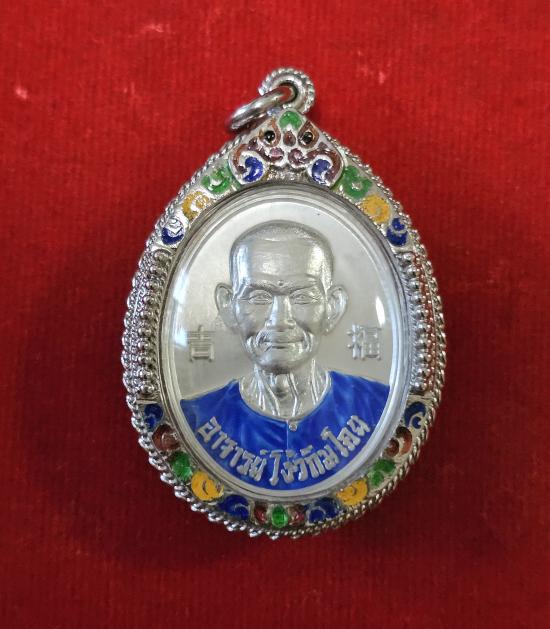 เหรียญเซียนแปะ มงคล108 วัดศาลเจ้า เนื้อเงินลงยา กรอบเงินลงยา จัดสร้างโดย อั๋น โอกิ