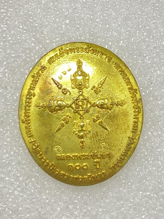 เหรียญหล่อท้าวมหาพรหม รุ่น"พรหมรังษี" ที่ระลึกอายุวัฒนมงคล ๑๐๐ ปี สมเด็จพระญาณสังวร ฯ วัดบวรนิเวศ เนื้อชนวนทองระฆัง หน้ากากเงิน กล่องเดิม