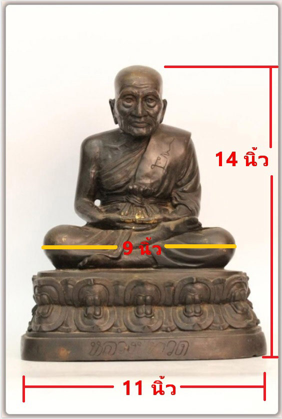 พระบูชาหลวงพ่อทวด วัดบางนอน จ.ระนอง รุ่นเศรษฐี 9ชั้น ปี พ.ศ.2534 เนื้อทองเหลือง ขนาดหน้าตัก 9 นิ้ว.!! ใต้ฐานอุดผงพุทธคุณ พร้อมบัตร GPra