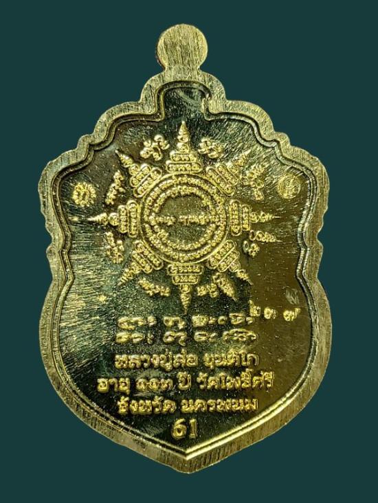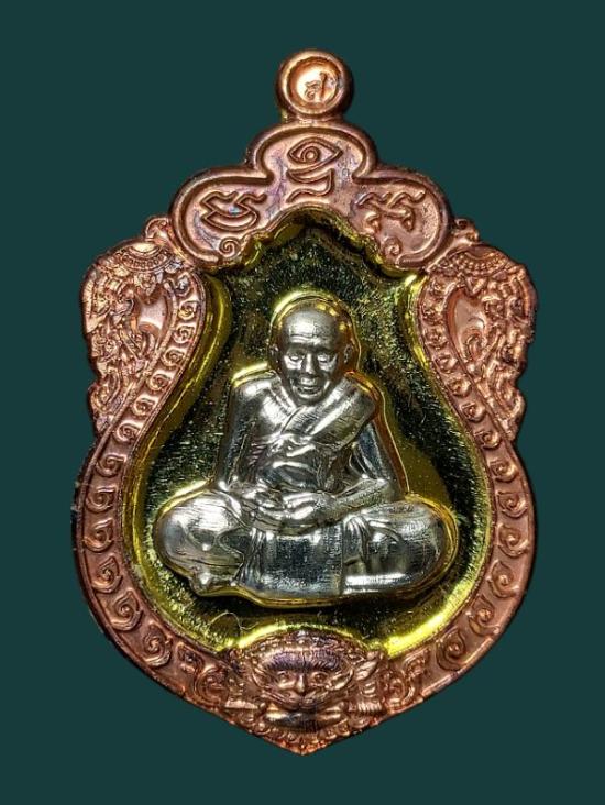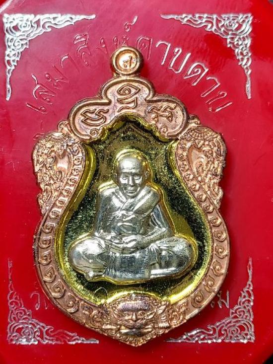 เหรียญเสมาสิงห์คาบดาบ รุ่นเศรษฐีฦาโลก เนื้อทองทิพย์หน้ากากอัลปาก้า ขอบมองแดงตอกโค๊ต ก(กรรมการ) เลข๒๓๗