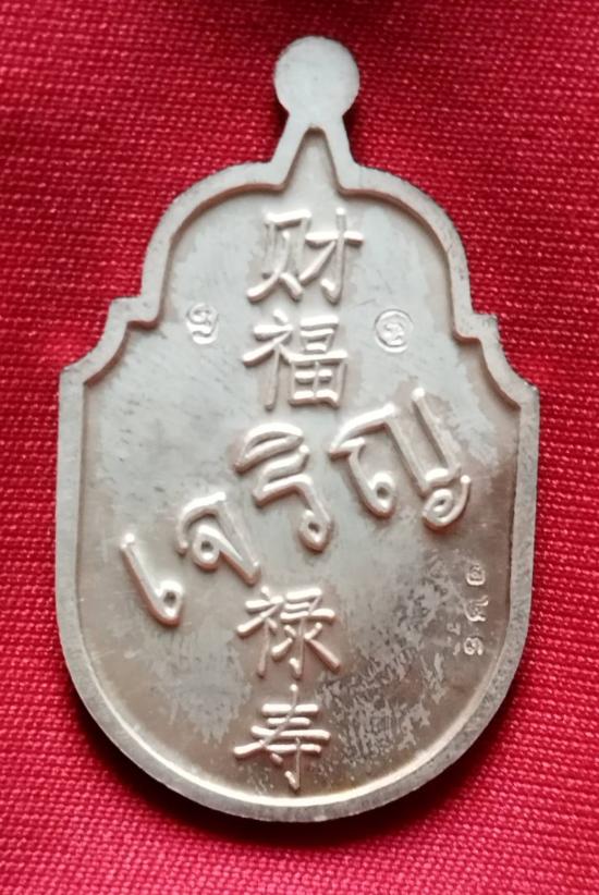 ด้านหลัง มีภาษาจีน 4 คำ อ่านเรียงลงตามยาวว่า ""ไฉ่-ฮก-ลก-ซิ่ว"" และมีภาษาไทย คำว่า ""เจริญ"" มีความหมายมากมายกล่าวนาม มหาเทพของแผ่นดินจีน ทั้ง 4 องค์คือ