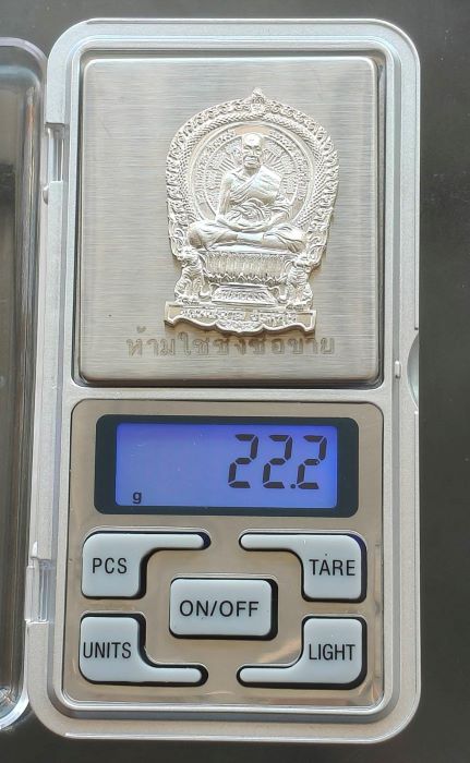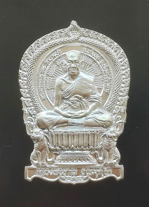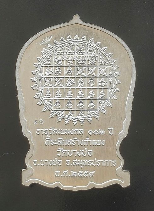 เหรียญนั่งพาน ที่ระลึกสร้างกำแพง หลวงพ่อชาญ วัดบางบ่อ จ.สมุทรปราการ ปี 2559 เนื้อเงิน โค๊ตหมายเลข 10