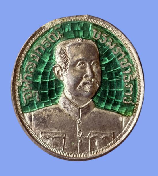 เหรียญ เนื้อเงินลงยาสีเขียว ที่รฤกษ์ครบรอบ 89 ปี วันสถาปณาสุขาภิบาลแห่งแรกของกรุงสยาม ณ .ต.ท่าฉลอม อ.เมือง จ. สมุทรสาคร 18 มีนาคม 2537