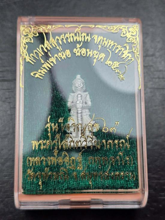รูปหล่อท้าวเวสสุวรรณ หลวงพ่ออิฏฐ์ วัดจุฬามณี พิมพ์เข่าตรง รุ่นเจริญสุข 63 พ.ศ.2563 #เนื้อเงิน สภาพสวย เลข 171