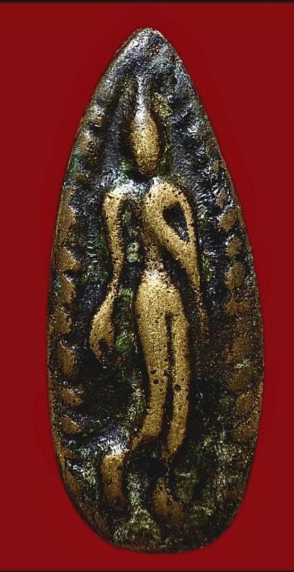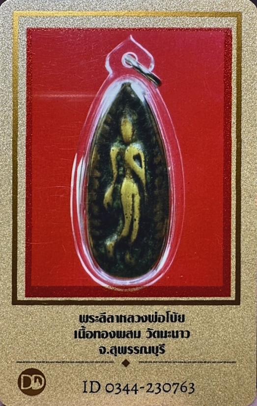 พระลีลาใบข้าวหลวงพ่อโบ้ย วัดมะนาว พิมพ์ใหญ่ ปี 2473 เนื้อทองผสม องค์สวยงาม พร้อมบัตรรับรองพระแท้