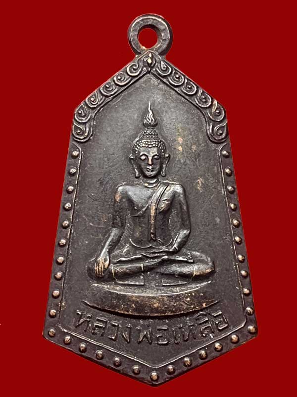 เหรียญหลวงพ่อเหลือ วัดสร้อยทอง รุ่นเสาร์ห้า ปี 2525 เนื้อทองแดง รมดำตอกโค๊ต |