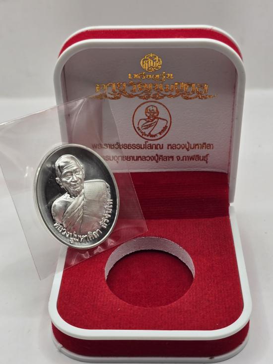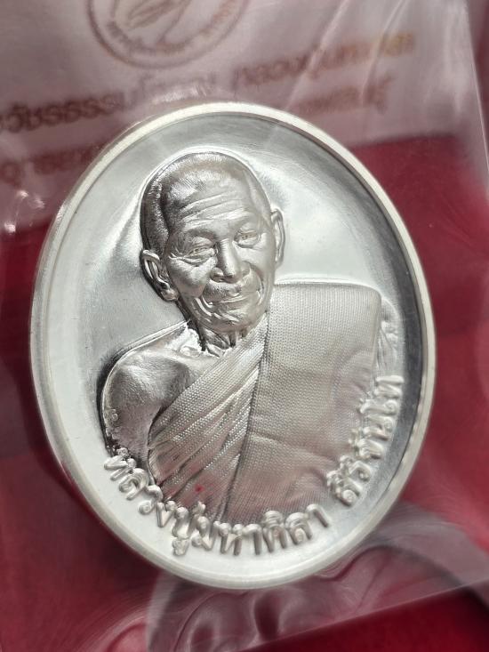 เหรียญ กลม ย้อนยุค อายุวัฒนมงคล 81ปี หลวงปู่มหาศิลา หลวงปู่ศิลา สิริจันโท ธรรมอุทยาน วัดพระธาตุหมื่นหิน จ.กาฬสินธุ์ เนื้อเงิน ผิวใสๆ เลข ๖๙๑ มีกล่องเดิม ด้านหลังโรยผงตะไบมวลสารรุ่นแรก |