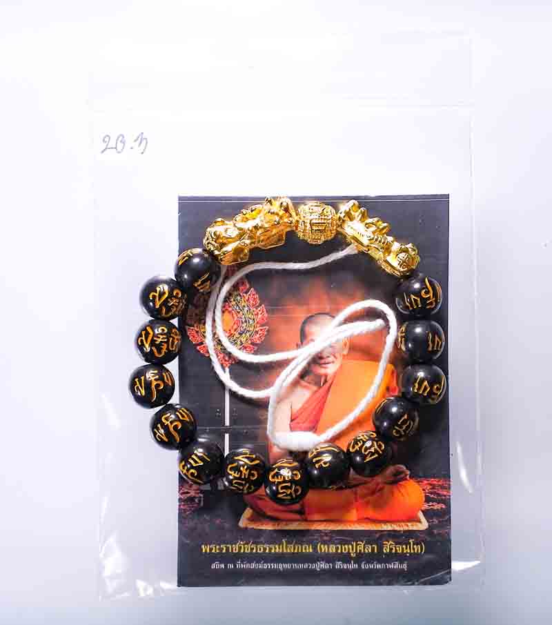 *กำไล ปี่เซีย หลวงปู่ศิลา ซองเดิม พร้อมสายสินจ์ รูปใบคาถา เคาะเดียวแดง ส่ง EMS