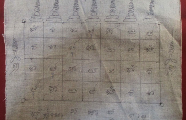 ผ้ายันต์ ไม่ทราบที่ จารยันต์ด้วยมือ ครับ