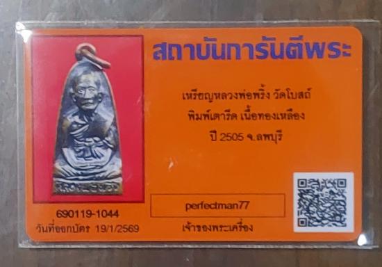 เหรียญหลวงพ่อพริ้ง วัดโบสถ์ พิมพ์เตารีด ปี2505 พร้อมออกบัตรการันตีพระแท้เรียบร้อยแล้วครับ