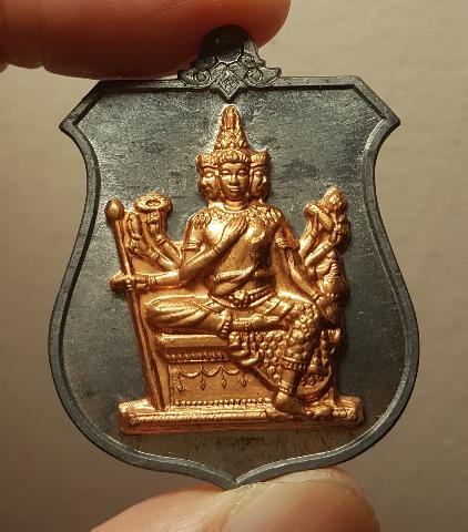เหรียญพรหม๑๓ หลวงพ่อชำนาญ วัดบางกุฎีทอง เนื้อตะกั่วหน้ากากทองแดง ในชุดกรรมการ หมายเลข 301