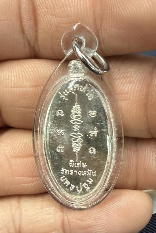 เหรียญใบขี้เหล็ก รุ่นสุดท้าย หลวงปู่แผ้ว วัดรางหมัน พิมพ์เล็ก เนื้อเงิน ปี 2556 หมายเลข 968 สวยเดิม