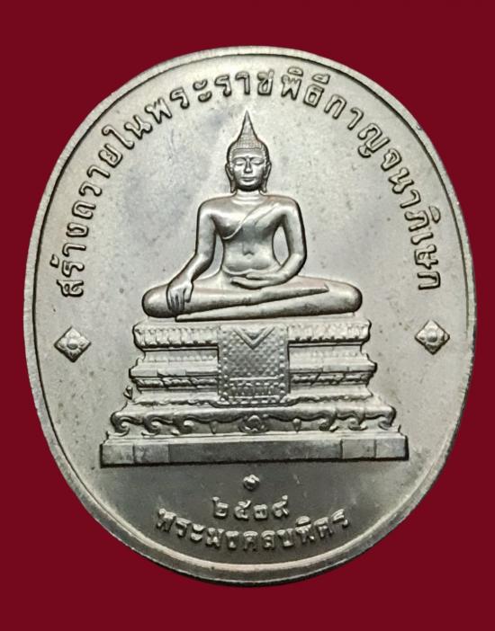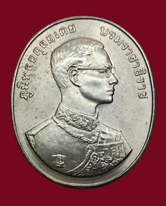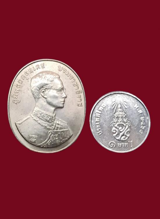 เหรียญที่ระลึกในหลวงรัชกาลที่๙ หลังหลวงพ่อมงคลบพิตร เนื้อเงิน พิมพ์ใหญ่สร้างในพิธีกาญจนาภิเษก ปี2539 |