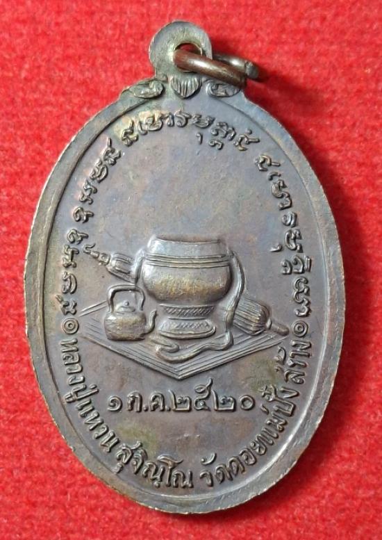 เหรียญหลวงปู่แหวน วัดดอยแม่ปั๋ง จ.เชียงใหม่ ปี2520 เป็นเหรียญรุ่นสังฆาฏิ เนื้อทองแดง เหรียญสภาพสวยมากๆบนพื้นผิวเหรียญยังเป็นสีรุ้งทั้งที่ด้านหน้าและด้านหลังเหรียญ มาพร้อมห่วงเดิมๆด้วยนะครับ |