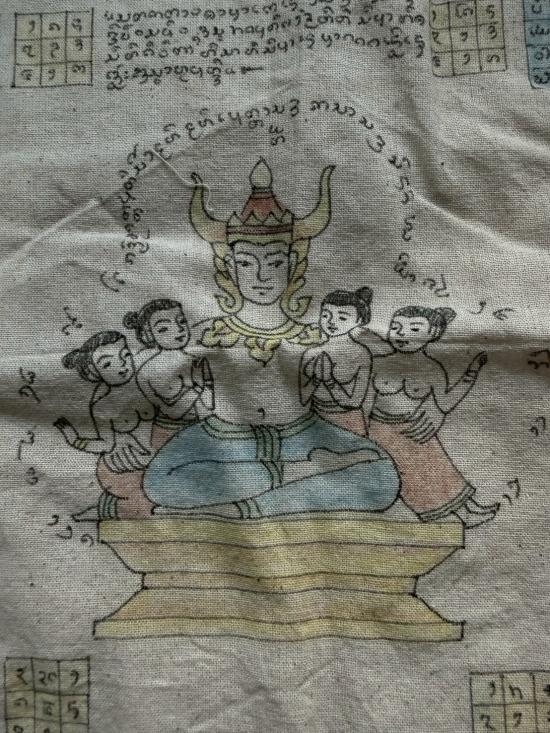 350... ผ้ายันต์พญาเขาคำ เขียนมือ ลงสี เก่าๆ ไม่ทราบที่ ขนาดใหญ่12นิ้ว (น่าจะเป็นผ้าดิบ ผ้าห่อศ..)