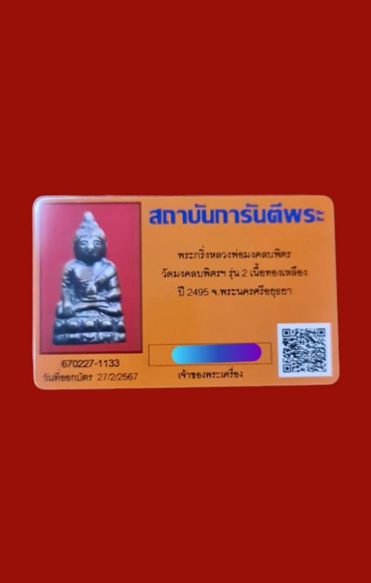พระกริ่งมงคลบพิตร รุ่น2 ปี 2495 เนื้อทองผสม วัดมงคลบพิตร จ.อยุธยา. +มาพร้อมบัตรการัตีพระ_แถมเลี่ยมกรอบเงินกันน้ำ