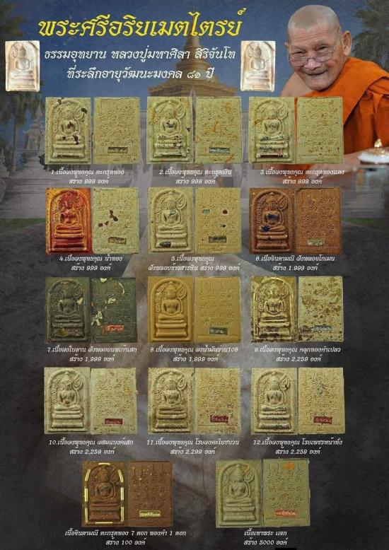 หลวงปู่มหาศิลา รุ่น พระศรีอริยเมตไตรย์ เนื้อผงพุทธคุณโรยผงตะไบชนวน เลข 1542