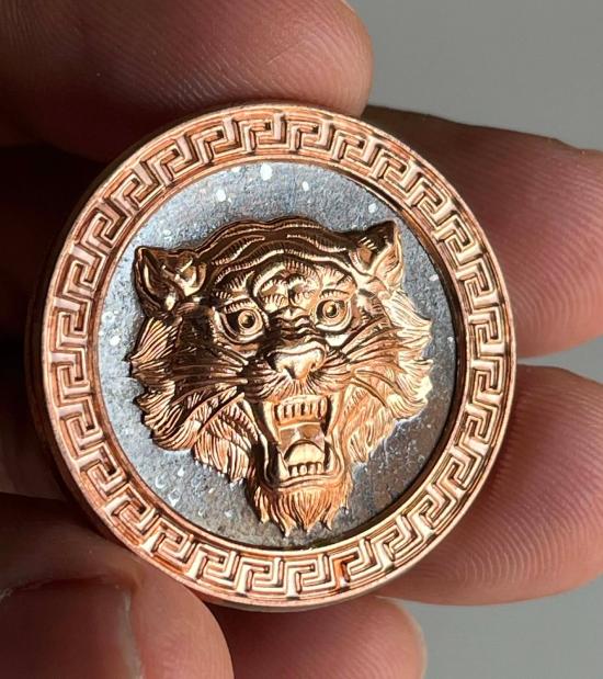 เหรียกลมหัวเสือ รุ่นเหนือเมฆ หลวงพ่อประสูติ วัดในเตา มาดามเดียร์สร้างมวลสาร100ล้าน พระอาจารย์ต้อม วัดท่าสะแบง หลวงปู่ศิลา เสกอธิฐานจิต เนื้อนวะโลหะ พรายเงิน ขอบVS หน้ากากเสือ ชุบนาค เลข 209