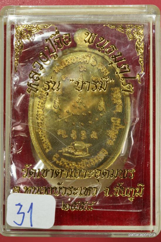 เหรียญหลวงปู่จื่อ รุ่นมงคลบารมี ๖ รอบ ปี 2558 เนื้อทองฝาบาตร หมายเลข 31