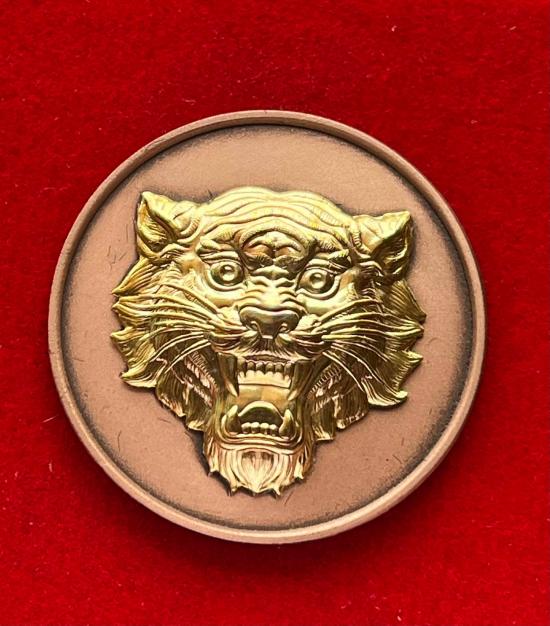 เหรียญกลมหัวเสือ รุ่นเหนือเมฆ หลวงพ่อประสูติ วัดในเตา มาดามเดียร์สร้างมวลสาร100ล้าน พระอาจารย์ต้อม วัดท่าสะแบง หลวงปู่ศิลา เสกอธิฐานจิต เนื้อทองเเดงซาติน หน้ากากชุบทอง