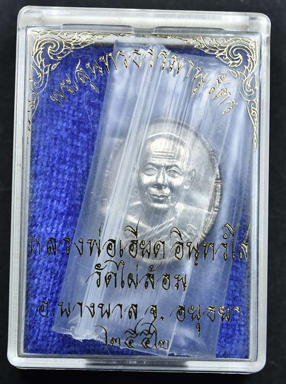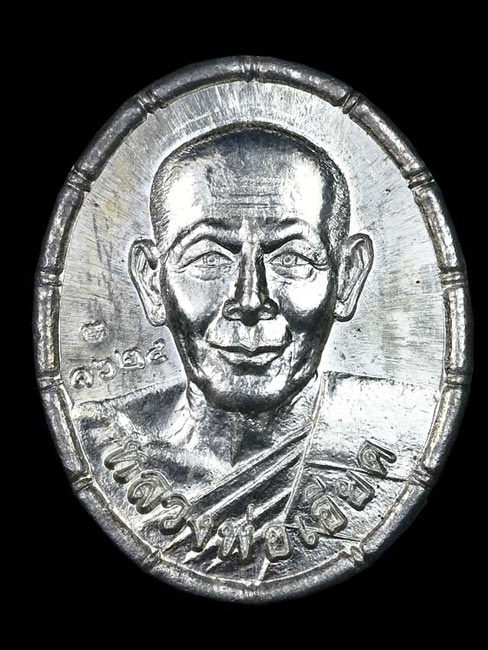 เหรียญเม็ดแตงเนื้อเงิน หลวงพ่อเอียด วัดไผ่ล้อม อยุธยา ปี52 พร้อมกล่อง
