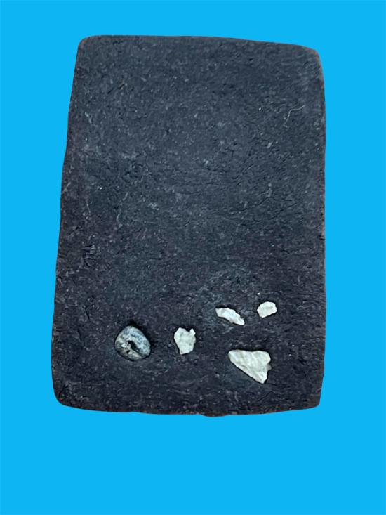 หลวงปู่ทวดพิมพ์ตัวด้วงสี่เหลี่ยมกรรมการเนื้อผงคลุกรักรุ่นเลื่อนสมณศักดิ์ปี 2545 อาจารย์ทอง วัดสำเภาเชย ด้าน หลังฝั่งเม็ดผงบางขุนพรหม และฝั่งเม็ดข้าวสารดำ สร้าง น้อยมาก