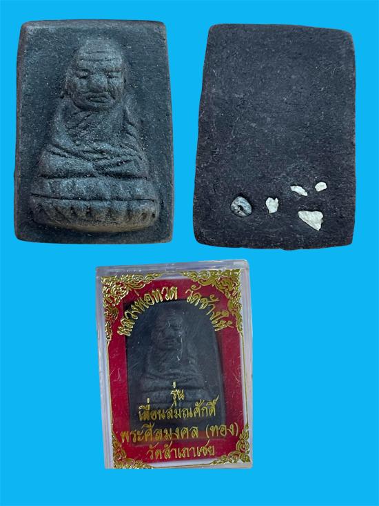 หลวงปู่ทวดพิมพ์ตัวด้วงสี่เหลี่ยมกรรมการเนื้อผงคลุกรักรุ่นเลื่อนสมณศักดิ์ปี 2545 อาจารย์ทอง วัดสำเภาเชย ด้าน หลังฝั่งเม็ดผงบางขุนพรหม และฝั่งเม็ดข้าวสารดำ สร้าง